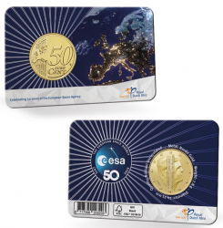 Coincard oficial de los Países Bajos con los 50 Euro Cent del 2025 dedicada al 50º aniversario de la Agencia Espacial Europea, en calidad BU.
