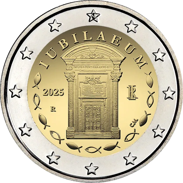 Moneda de 2 Euro de Italia 2025 dedicada al Jubileo de 2025. Procedente de cartucho en calidad S/C.