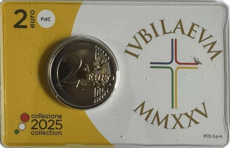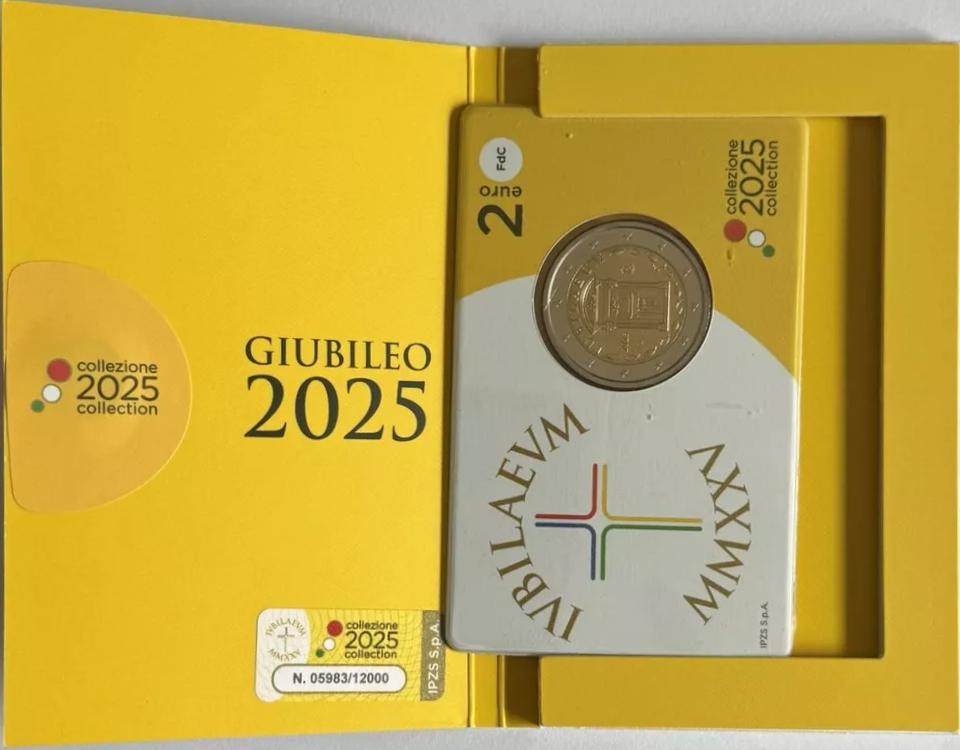 Coincard de Italia con los 2 Euro conmemorativos dedicados al Jubileo de 2025, en calidad BU.