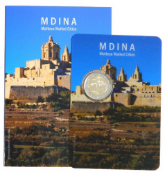 Coincard con la moneda de 2 Euro Malta 2025 de la serie Ciudades amuralladas de Malta, dedicada este año a la Ciudad de Mdina, en calidad BU.