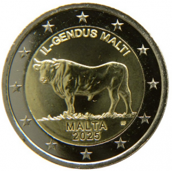 Moneda de 2 Euro Malta 2025 dedicada al buey maltés, procedente de cartucho en calidad SC.
