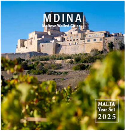 Cartera oficial de Malta con las 8 monedas Euro (0.01 - 2 €) del 2025 + los 2 Euro Conmemorativos de 2025 dedicados a Mdina, en calidad BU.