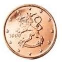 * Las monedas de 1 y 2 Euro Cent son monedas de curso legal en Finlandia pero de hecho no circulan al estar los precios redondeados a 5 Céntimos.