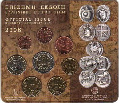 Serie de Grecia con los 8 valores Euro (0.01 € - 2 €) del 2006, sacadas de cartucho en calidad SC.
