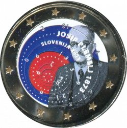 Moneda de 2 Euro Eslovenia 2023 dedicada al 150 aniversario del nacimiento de Josip Plemelj, en calidad sin circular. Coloreada.