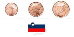 Miniserie de Eslovenia con los valores de 1, 2 y 5 Euro Cent del 2024, procedentes de cartucho en calidad SC.
