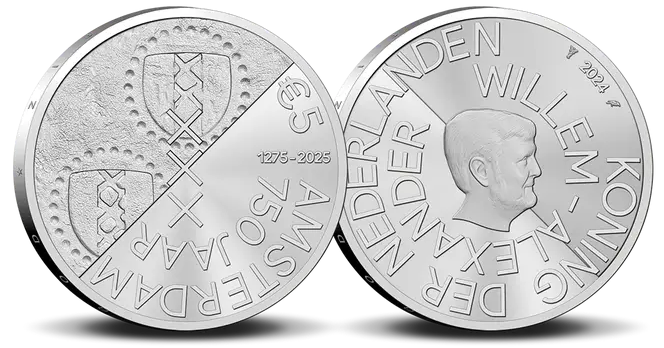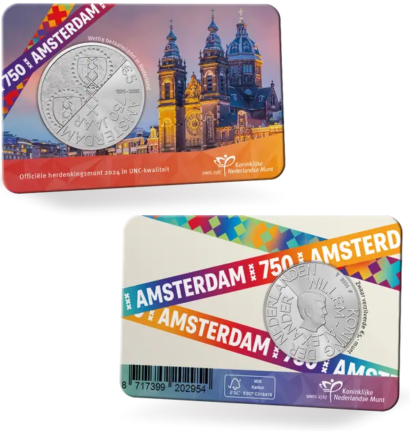 Coincard de Holanda con los 5 Euro 2024 dedicados al 750 Aniversario de Amsterdam, en calidad S/C.