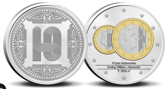 Cartera oficial de Holanda 2024 de la Serie Themaset dedicada a los 10 años de monedas en euros con la imagen del rey Willem-Alexander.