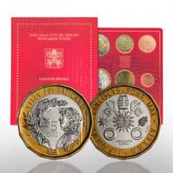 Cartera Oficial Anual de la Ciudad del Vaticano con las 8 monedas Euro del 2024 con los 5 euros bimetálicos dedicados al 650 Aniversario de la muerte de Francesco Petrarca en calidad FDC.
