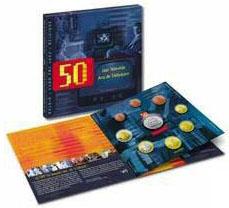 Cartera Oficial de Bélgica con las 8 Monedas Euro (0.01 - 2 €) del 2003 en calidad BU bajo la temática 50 Años de la Televisión.