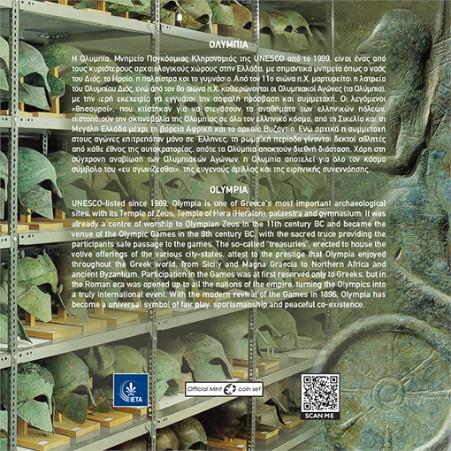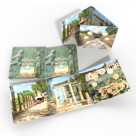 Cartera de Grecia con las 8 monedas Euro (0,01 - 2 €) del 2024 en calidad BU, dentro de la serie Turismo griego dedicada este año a Olimpia.