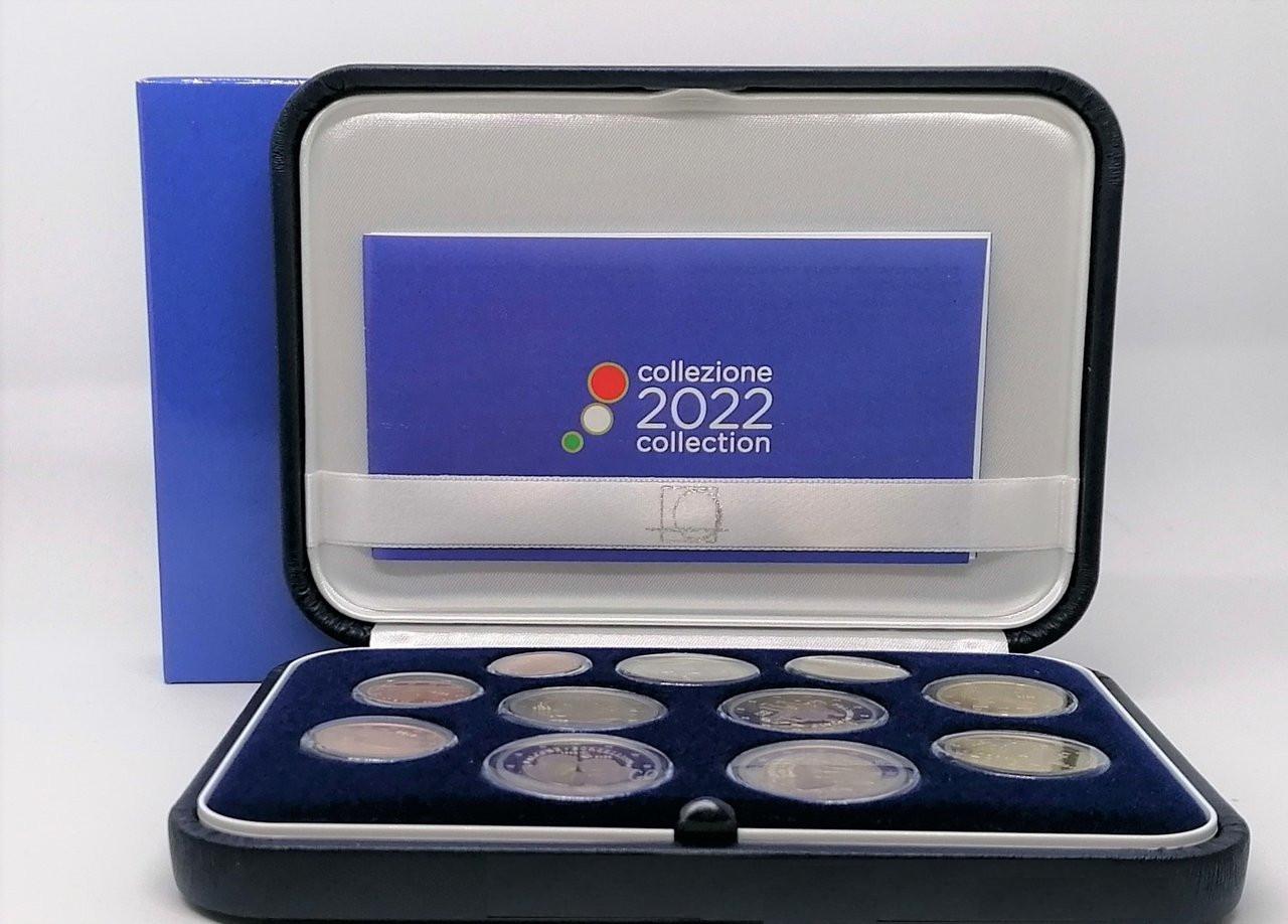 Cartera de Italia con los 8 valores Euro comunes (0.01 - 2 €) del 2022 y las 3 monedas de 2 Euro conmemorativas acuñadas en 2022 (Erasmus, Policía nacional y Falcone y Borsellino). En calidad PROOF.