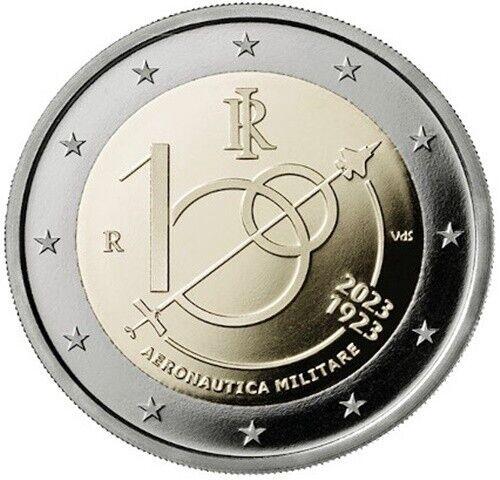 Moneda de 2 Euro Italia 2023 conmemorativa del 100º Aniversario de la creación de La Fuerza Aérea Italiana. Procedente de los cartuchos oficiales destinados para coleccionistas, en calidad S/C.