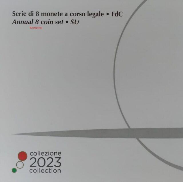 Cartera de Italia con los 8 valores Euro comunes (0.01 - 2 €) del 2023 en calidad FDC.