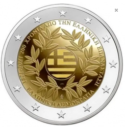 Moneda de 2 Euro de Grecia 2021 dedicada a los 200 años de la Revolución griega, en calidad sin circular.