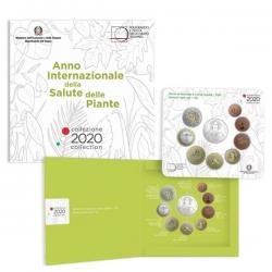 Cartera de Italia con los 8 valores Euro comunes (0.01 - 2 €) del 2020 + la moneda de 5 Euro dedicada al año internacional de la Salud Vegetal.