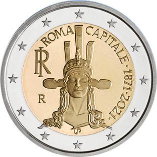 Moneda de 2 Euro Italia 2021 conmemorativa del 150 Aniversario del establecimiento de Roma como capital de Italia, procedente de los cartuchos oficiales destinados para coleccionistas, en calidad S/C.