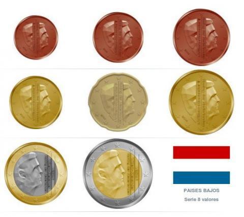 Serie de los Países Bajos con los 8 valores Euro (0.01 - 2 Euro) del 2021 procedentes de cartera oficial en calidad BU.