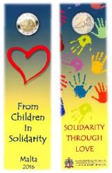 Moneda de 2 Euro Malta 2016 de la Serie "Los Niños y la Solidaridad" este primer año dedicada a "El amor", procedente de cartucho en calidad S/C.