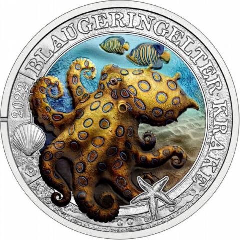 3 Euro Austria 2022 Vida Marina. Pulpo de Anillos Azules