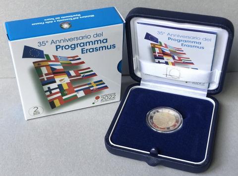 Estuche de lujo con la Moneda de 2 Euro Italia 2022 25º aniversario del Programa Erasmus , en calidad PROOF.