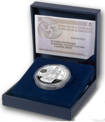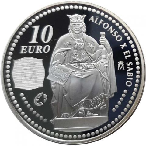 Moneda de 10 Euro España 2009 acuñada en plata 925 milésimas dedicada a Alfonso X, el Sabio, en calidad PROOF.