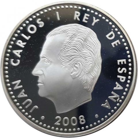 En el anverso de la moneda de plata aparece la efigie de S. M. el Rey Don Juan Carlos I.