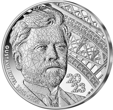 Moneda de 10 Euro 2023 acuñada en Francia dedicada al 100º aniversario de la muerte de Gustave Eiffel. Acuñada en plata y en calidad sin circular.