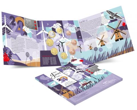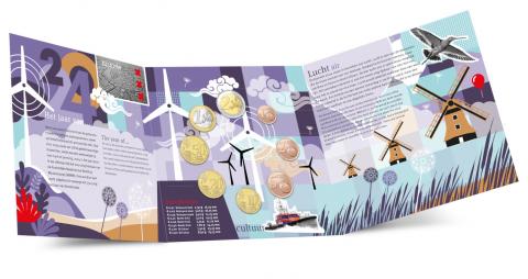 Cartera oficial anual de los Países Bajos con las 8 Monedas Euro (0.01 - 2 €) acuñadas en 2024 perteneciente a la serie "Los cuatro elementos" dedicada al aire, en calidad BU.