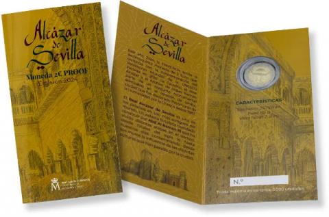 Coincard oficial con los 2 Euro España 2024 dedicada a La Catedral, el Alcázar y el Archivo de Indias de Sevilla, en calidad PROOF.