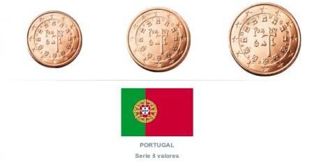 Serie de los 3 valores de menor valor (1, 2 y 5 Euro Cent) de Portugal 2024, procedentes cartera en calidad BU.