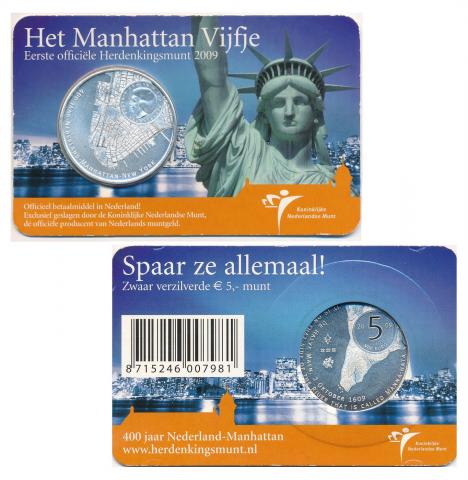 Coincard Holanda con los 5 Euro 2009 dedicados a Manhattan, en calidad SC.
