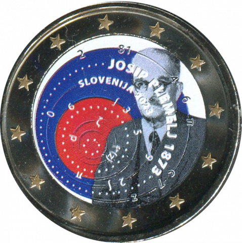 Moneda de 2 Euro Eslovenia 2023 dedicada al 150 aniversario del nacimiento de Josip Plemelj, en calidad sin circular. Coloreada.