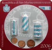 Minikit oficial con 3 cartuchos de 20 monedas de 1, 2 y 5 Euro Cent San Marino 2006.