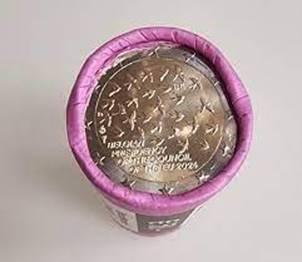 Cartucho oficial de Bélgica con 25 monedas de 2 Euro 2024 dedicada a la Presidencia belga del Consejo de la Unión Europea, en calidad SC.