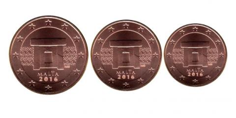 Miniserie con las monedas de 1, 2 y 5 Euro Cent de Malta acuñadas en el 2024, procedentes de cartera en calidad BU.