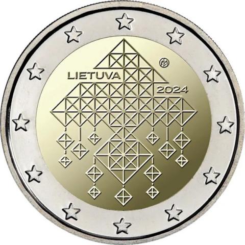 Moneda de 2 Euro conmemorativos de Lituana acuñada en 2024 dedicada a la tradición de los jardines con techo de paja en Lituania, incluida en la Lista Representativa del Patrimonio Cultural Inmaterial de la Humanidad de la UNESCO, procedente de cartucho en calidad S/C.