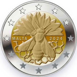 Moneda de 2 Euro Malta 2024 dedicada a la Abeja de Malta, procedentes de grandes bolsas con 100 unidades, en calidad SC.