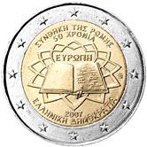 Moneda de 2 Euro Grecia 2007 conmemorativa del Tratado de Roma procedente de cartucho en calidad SC.