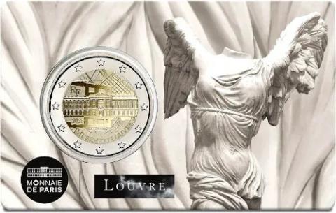 Coincard de Francia con los 2 Euro 2025 Museo del Louvre deidcada a La Victoria de Samotracia, en calidad BU.