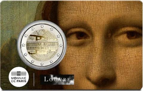 Coincard de Francia con los 2 Euro 2025 Museo del Louvre deidcada a La Mona Lisa, en calidad BU.