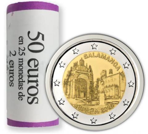 Cartucho con 25 monedas de 2 Euro España 2025 dedicada a la Ciudad vieja de Salamanca, en calidad SC.