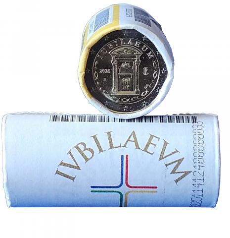Cartucho oficial de 25 monedas de 2 Euro de Italia 2025 dedicada al Jubileo de 2025, en calidad S/C.