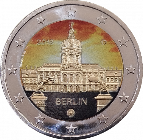 Monedas de Alemana de 2 Euro 2018 dedicado al Estado de Berlín mostrando el Palacio de Charlottenburg, procedentes de cartucho en calidad SC. Coloreada.