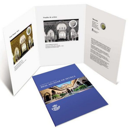 Este producto desarrollado conjuntamente por Correos y la Fabrica Nacional de Moneda y Timbre – Real Casa de la Moneda rinde homenaje al Real Alcázar de Sevilla.
