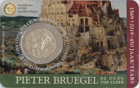 Coincard de Bélgica con la Moneda de 2 Euro Bélgica 2019 dedicada al 450º aniversario de la muerte de Pieter Brueghel, en calidad BU.