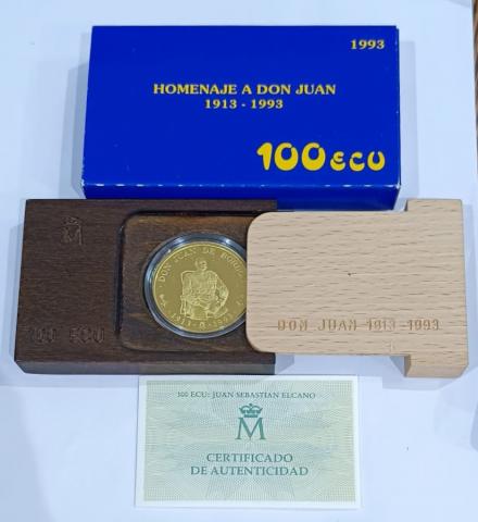 Moneda de 100 ECU FNMT España 1993 Conmemorativa de Don Juan De Borbón, en calidad PROOF.