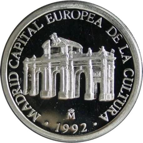 Moneda de 1 ECU conmemorativa de Madrid Capital Europea de la Cultura en 1992, acuñada en plata en calidad Flor de cuño.