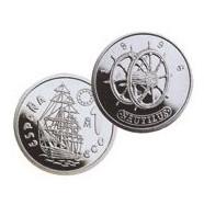 - El Reverso de la moneda reproduce la Corbeta Nautilus y el facial.