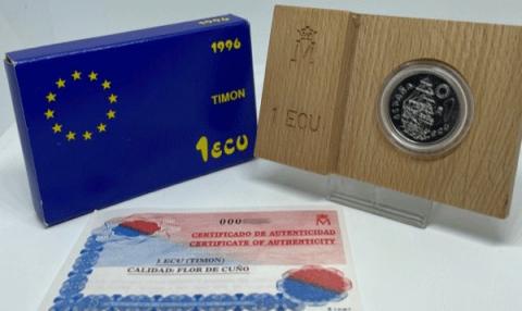 Moneda de 1 ECU España FNMT 1996 dedicada al timón del Nautilus, en calidad Flor de Cuño.